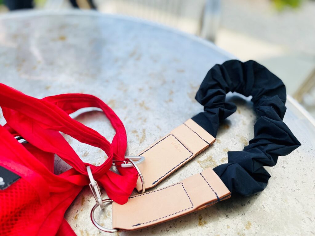夏に販売した「シュシュストラップ」は昆布の繊維を使用した布と、革の組み合わせで商品を作りました。